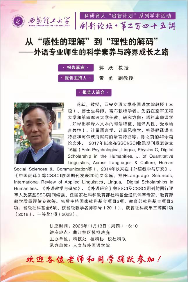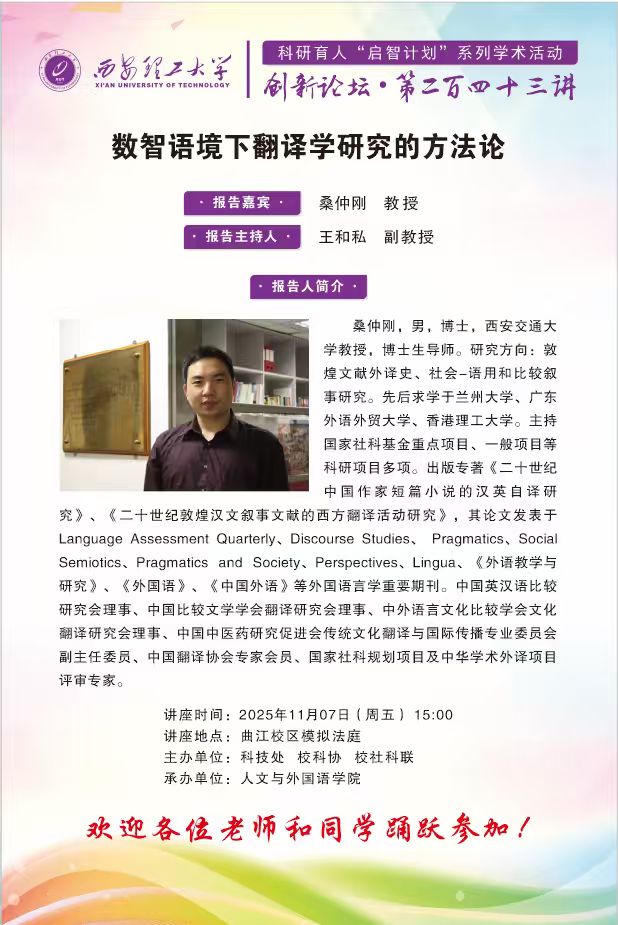 11月1日,陕西省发展经济学学会2025年学术年会在西安理工大学曲江校区成功举办。我校副校长张晓晖出席开幕式并致辞,会议由西安理工大学经济与管理学院院长李建勋主持。张晓晖对参与本次大会的专家学者表示欢迎,并介绍了西安理工大学的基本情况。他表示,本次大会围绕推进农业农村现代化、促进城乡要素双向流动、构建现代乡村产业体系、推进新型城镇化和乡村全面振兴、推动城乡融合发展等议题展开深入探讨,为谱写“以城乡融合...