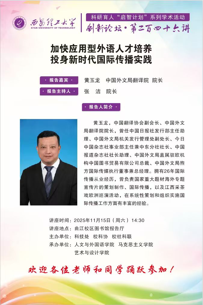 10月12日下午,2025级国际学生开学典礼在金花校区图书馆报告厅举行。副校长张晓晖出席,典礼由国际合作与交流处处长杨媛主持。张晓晖致欢迎辞。他代表学校向国际新生表示诚挚的祝贺和欢迎,介绍了西安理工大学深厚的办学历史、学科特色和雄厚的师资力量。针对国际新生的成长发展,张晓晖提出三点殷切期望:一是希望大家潜心钻研专业知识,善用学校资源,将理论与实践结合,练就过硬本领;二是期盼同学们成为连接中国与世界的桥...