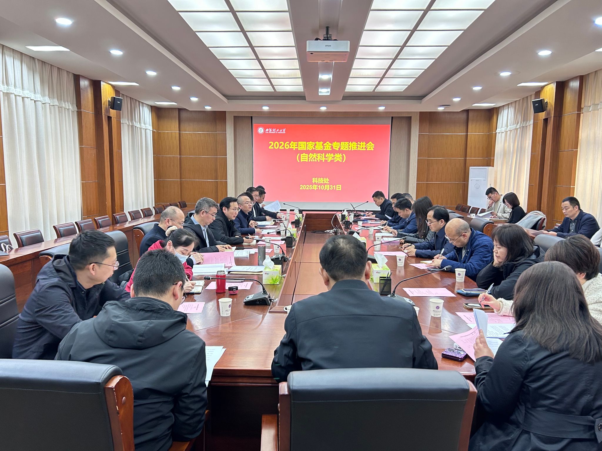 2025年10月31日下午,我校2026年国家基金专题推进会(自然科学类)在金花校区101会议室召开。副校长朱记伟出席会议并讲话。科技处处长尹忠刚主持会议。朱记伟指出,各学院要通过本次国家基金专题推进会,互学互鉴、取长补短,全力推进2026年国家基金申报工作,确保把学校的各项工作安排和要求落到实处。他强调,一是各学院要认真学习和研究学校制定的各项政策文件,并制定学院国家基金支持办法和实施细则;二是各学院要加强青年....
