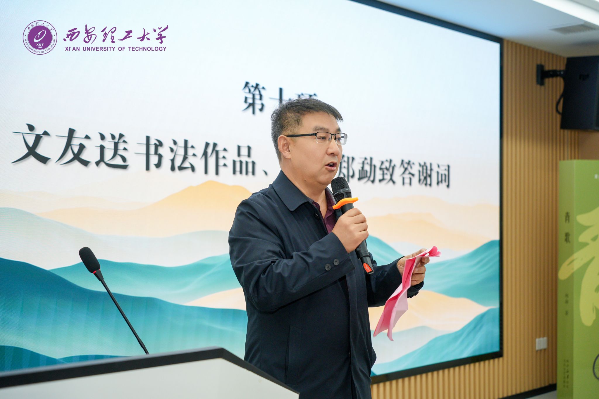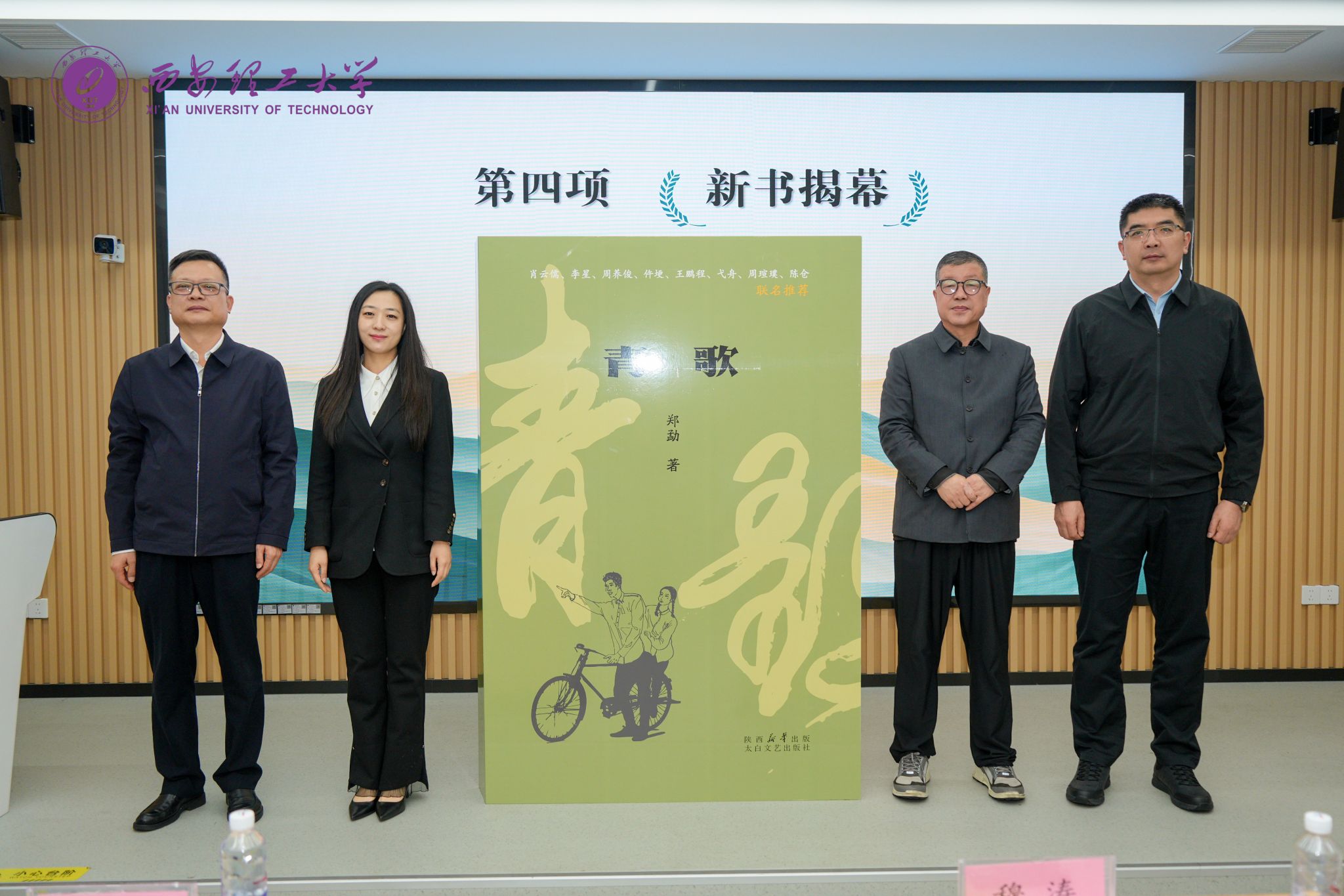 本次发布会由西安市作协主办、西安理工大学承办、长安作协参与协办。活动现场,张存库、张晓晖、西安作协主席穆涛、太白文艺出版社副总编申亚妮共同为新书揭幕,穆涛介绍了西安市作协 “长安新篇” 文学创作计划,申亚妮讲述了《青歌》的出版过程,著名文化学者肖云儒以视频方式解读了《青歌》的时代意义与内容价值,著名艺术评论家仵埂教授从文学艺术性角度分享对作品的见解,资深教育人、作家白玉稳聚焦《青歌》对当代大学生的教育启示,多维度展现作品的深度与广度,碑林区朗诵家协会主席吴静现场朗诵《青歌》精彩片段。郑勐向我校图书馆捐赠图书,学生与文友代表为郑勐献上鲜花与书法作品。发布会结束后,参会人员共同参观我校校史馆。