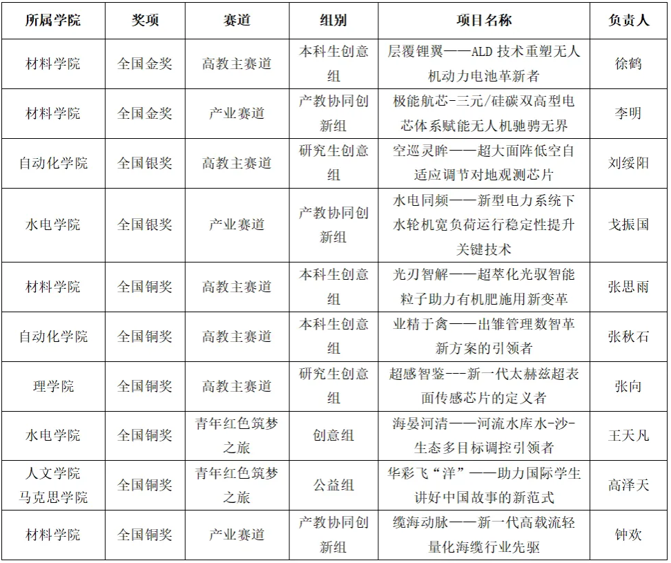 中国国际大学生创新大赛(2025)我校国赛获奖名单