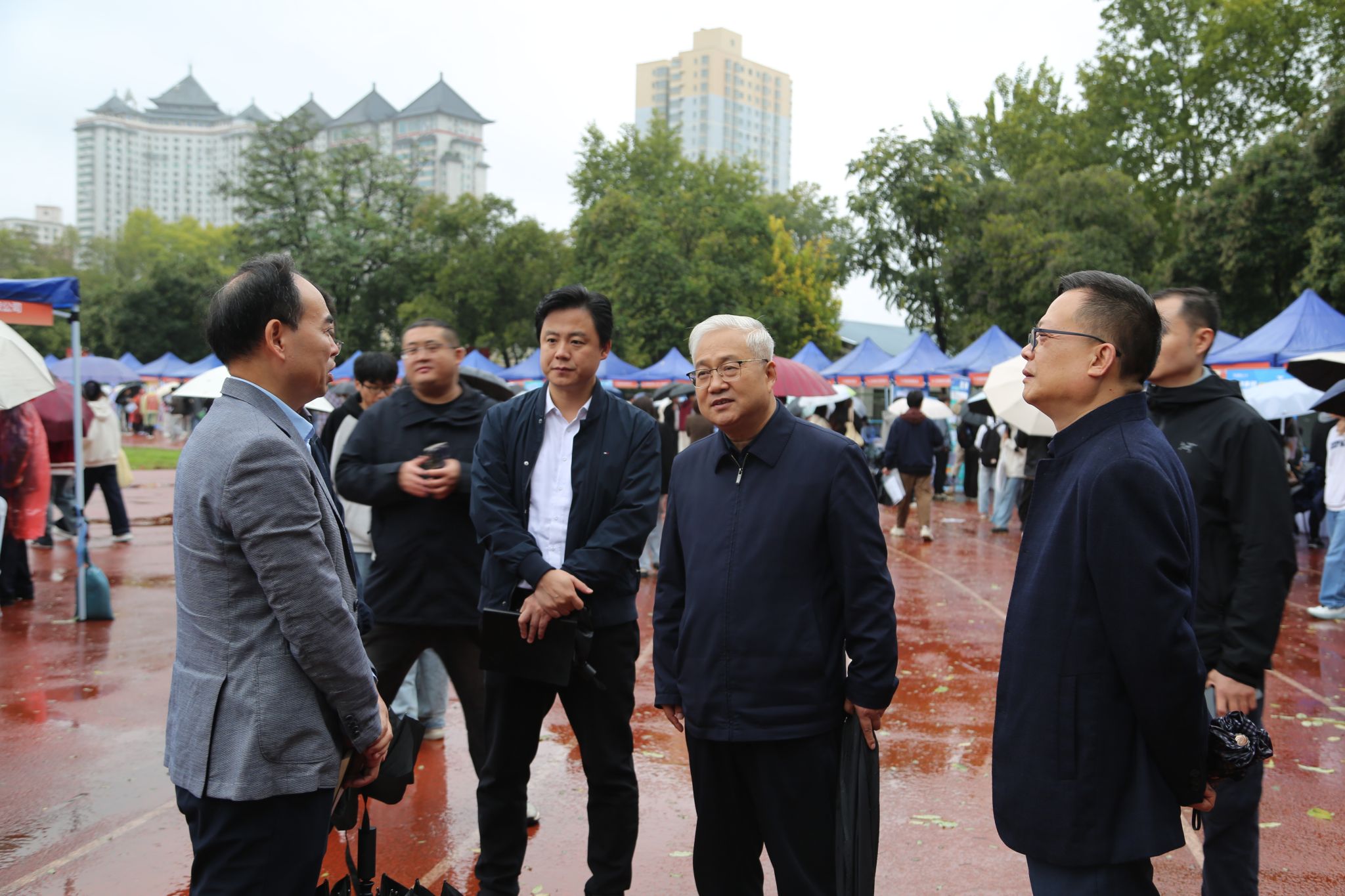 10月17日,陕西省2026届普通高校理工类毕业生联盟招聘会暨西安理工大学2026届毕业生秋季就业供需洽谈会在我校金花校区足球场举办。省教育厅学工部二级调研员白炀,校党委书记李智军、副书记张存库,现场指导工作并调研了解企业用人需求。