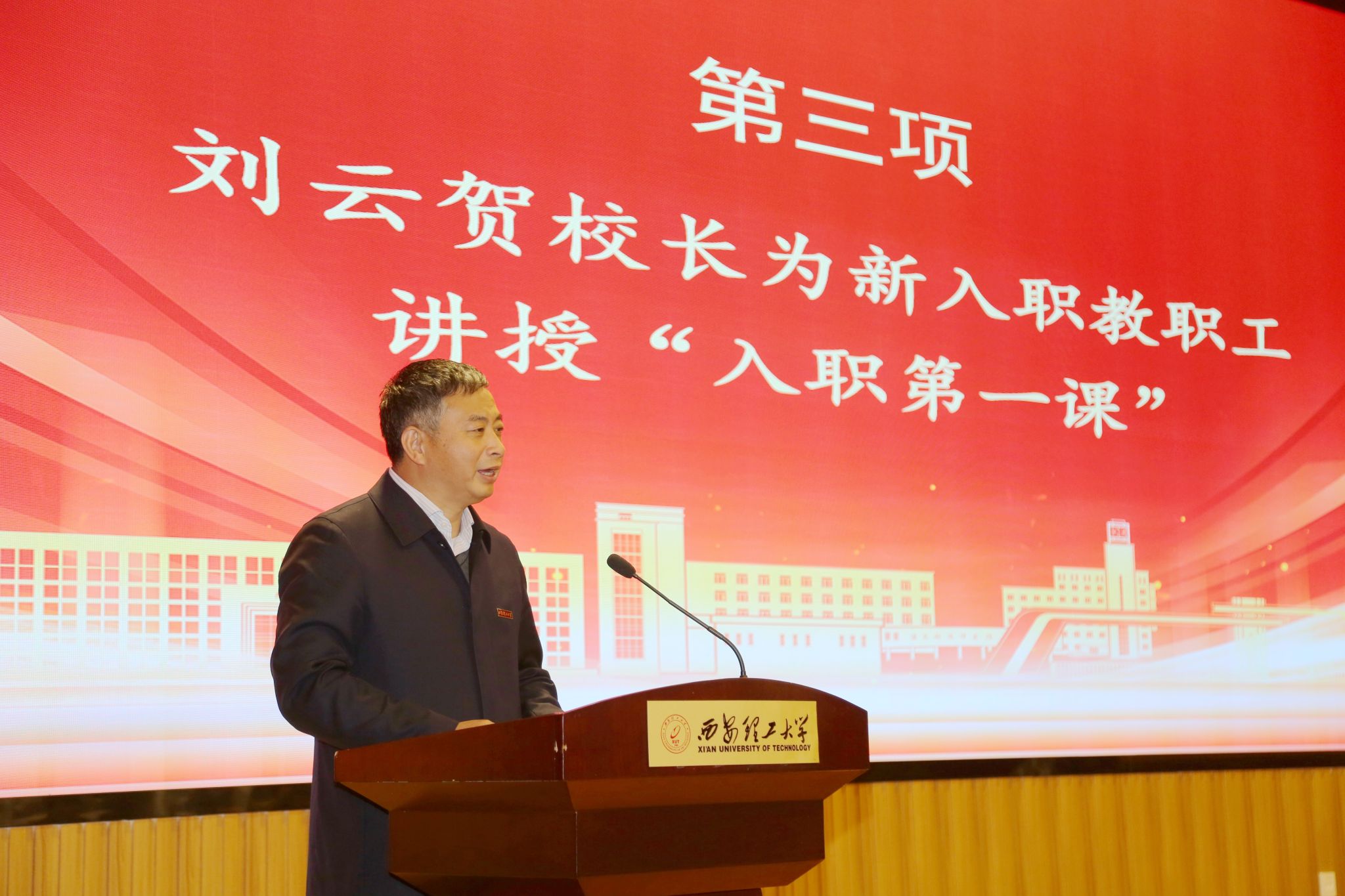 开班仪式上,刘云贺以“以教育家精神铸魂强师,谱写教育强国建设“西理工”华章”为题为全体新入职教师讲授“入职第一课”。他介绍了学校的办学基础和水平,详细梳理了学校辉煌的百年历程,以及30余万优秀校友在各领域的成就。他指出,学校为教师发展提供坚实保障,不仅有涵盖校史、教学、师德的岗前培训,更出台岗位聘任、破格晋升等政策;同时推进学校机构改革、提升改造校园环境,以及提质附属学校等民生项目,为大家解决后顾之忧。他向全体新入职教师提出四点要求:一是牢记初心使命,潜心教育育人,真正“为党育人、为国育才”初心,坚持用习近平新时代中国特色社会主义思想铸魂育人,把立德树人根本任务的要求落实到教书育人的全过程;二是明确职业目标,实现全面发展,静下心来从教学、科研、社会服务等多个维度,思考和制定个人的发展规划、职业目标,一步一个脚印,努力在各自岗位上创造更多个人价值、做出更多成果;三是坚持终身学习并严守师德师风底线,要树牢终身学习理念,做终身学习的践行者,主动适应新技术变革,积极探索新时代教育教学方法,同时一定要严肃政治纪律、工作纪律、生活纪律,做到谨言慎行、不越规矩,用心上好每一堂课;四是团结协作,共同营造和谐良好的工作氛围,在一个舒心的环境下开心工作,快乐生活,共同进步。