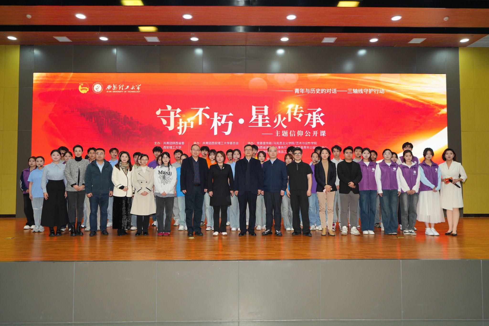 10月25日上午,由共青团陕西省委、西安理工大学等单位联合举办的中国人民志愿军抗美援朝出国作战75周年纪念活动暨“守护不朽·星火传承”主题信仰公开课在我校曲江校区图书馆报告厅举行。团省委副书记刘洋,省退役军人服务中心副主任宋亚军、我校党委副书记张存库出席活动。活动特别邀请爱星青年公益负责人韩佳龙、黄继光烈士侄孙女黄若希进行分享,学校500余名“雏鹰计划”团校学员共同聆听本次信仰公开课。