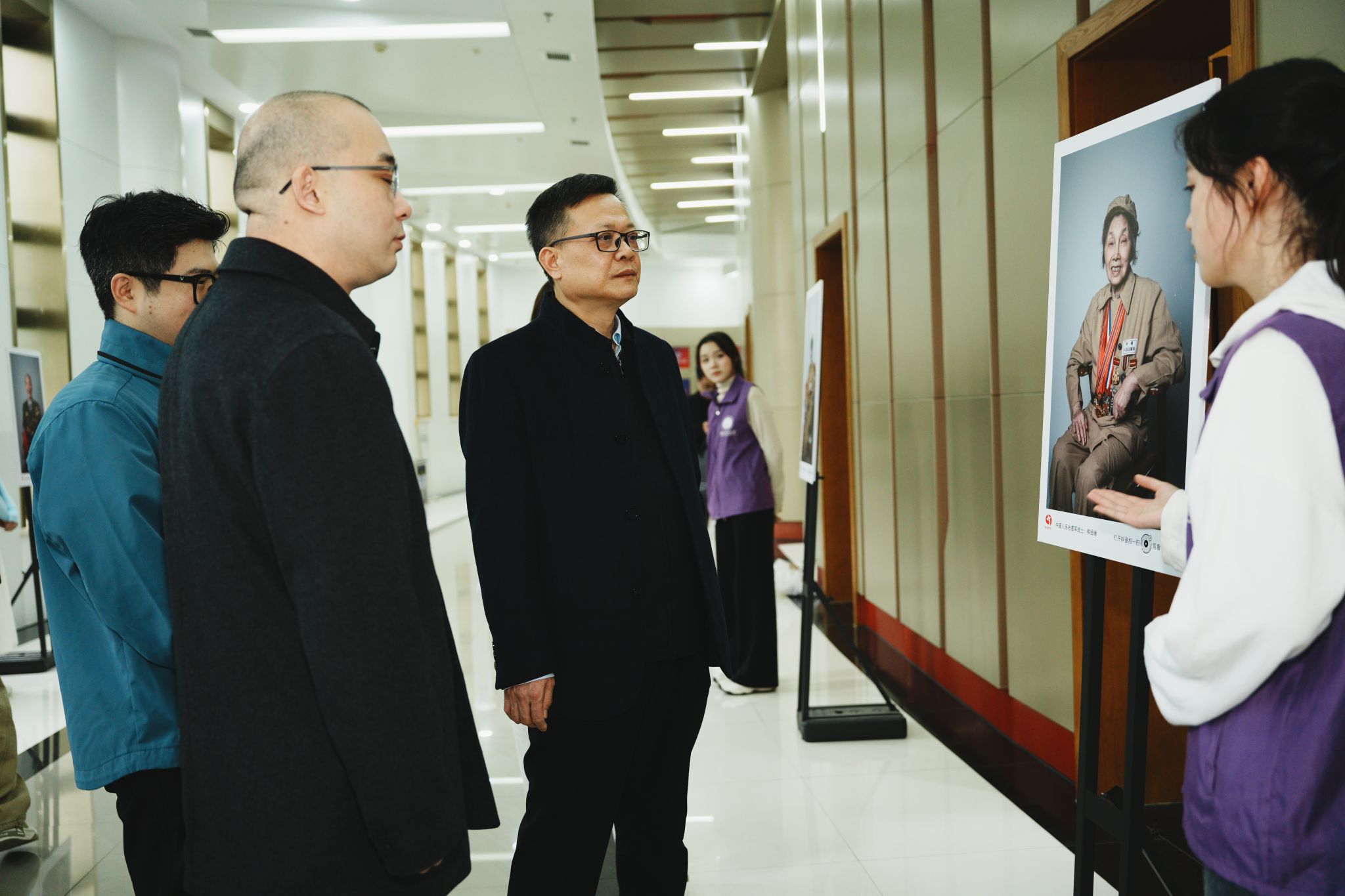 仪式结束后,与会人员集体参观在西安理工大学图书馆前举办的“星火传承——中国人民志愿军影像展”。在80余幅志愿军老兵肖像前,西安理工大学宣讲团的十余名大学生志愿者,向参观人员讲述着老兵们的英雄事迹,让“不朽”与“青春”在同一时空对话。