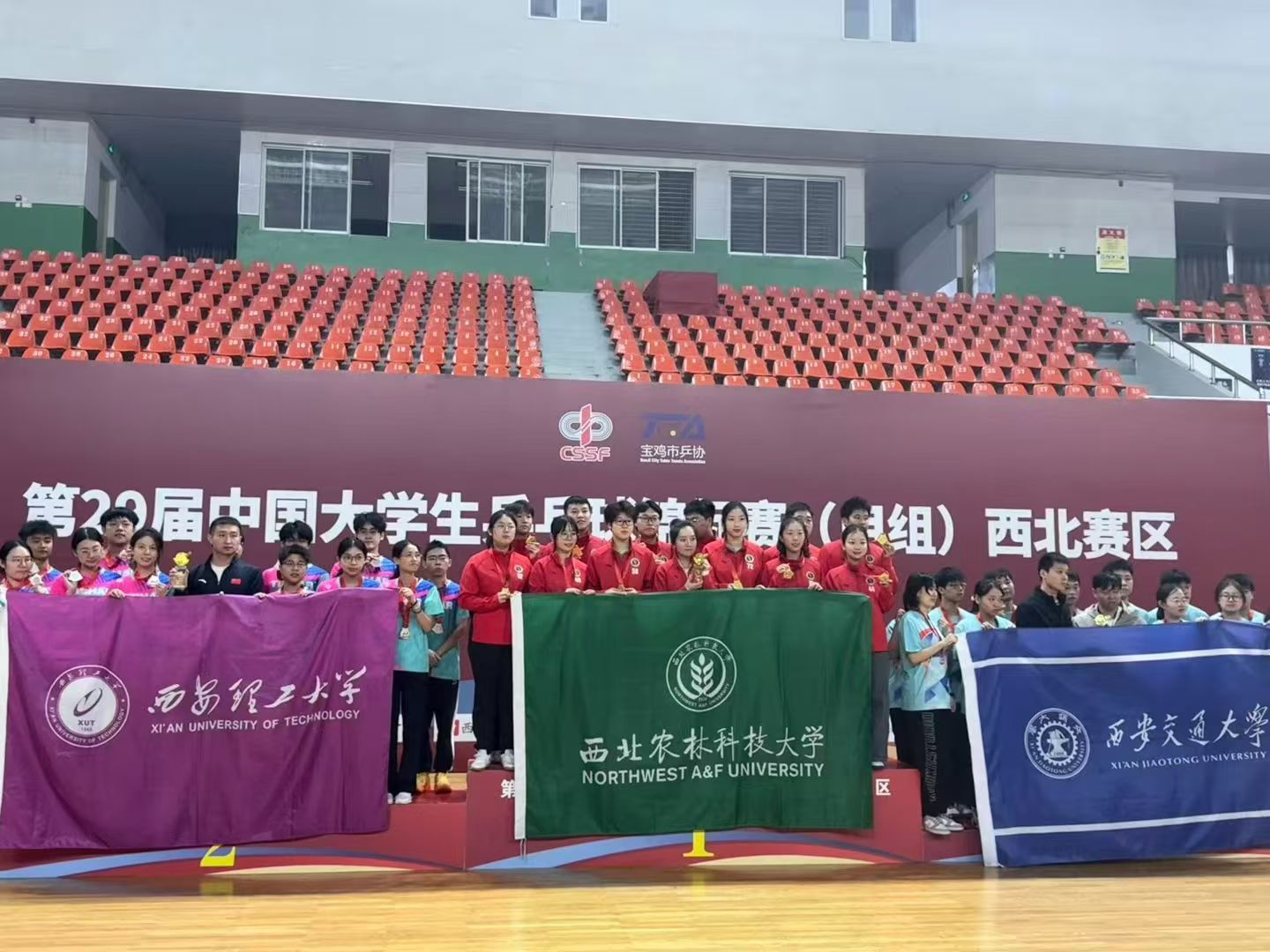 近日,我校乒乓球队捷报频传,在高水平赛事中接连展现过硬竞技实力与顽强拼搏精神——先是在第29届中国大学生乒乓球锦标赛(甲组)西北赛区勇夺团体亚军,创下学校在该赛事中的历史最好成绩;随后征战陕西省大学生乒乓球锦标赛,再度获多项团体与单项殊荣,彰显西理工学子体育风采。