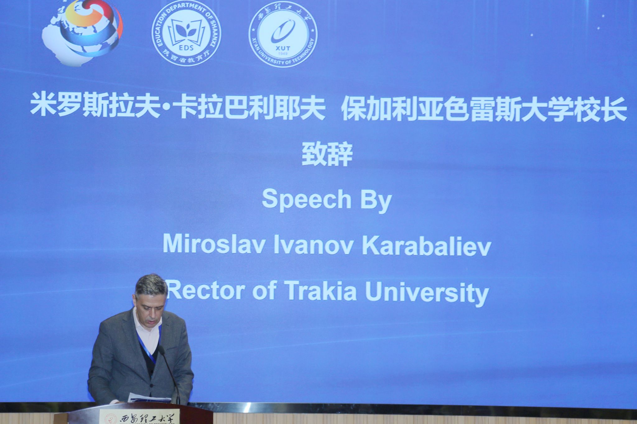 中国教育国际交流协会高等教育合作部副主任张俊卿、保加利亚色雷斯大学校长米罗斯拉夫・卡拉巴利耶夫、陕西省教育厅对外合作与交流处处长文通、西安理工大学副校长张晓晖出席活动并致辞。会议由西安理工大学国际合作与交流处处长杨媛主持。