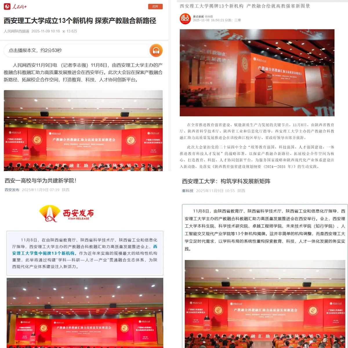 从“理论学习—工程实践—创新研发”的螺旋式培养模式,到“一人一企一策”的校企协同机制;从2025年上半年250件发明专利授权量的硬核实力,到多项专利作价落地的转化成效,西理工正以“学科—科研—人才—产业”贯通融合的生态体系,破解传统学科壁垒,激活创新发展动能。多家媒体的持续聚焦,既是对学校改革实践的认可,更是对西理“双一流”建设的鞭策。