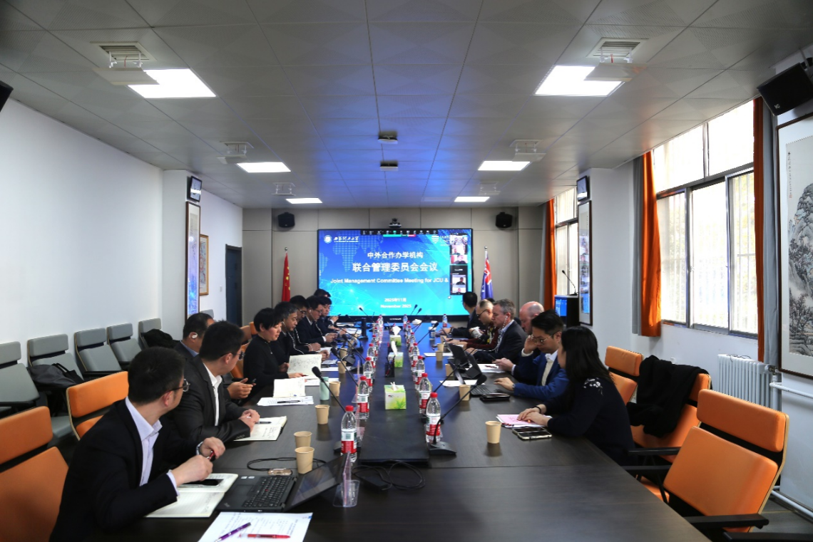 11月27日上午,我校与澳大利亚詹姆斯库克大学(JCU)以线上线下相结合的形式,召开了2025年中外合作办学机构联合管理委员会(JMC)会议。我校校长、联合管理委员会主任刘云贺,副校长张晓晖,詹姆斯库克大学代理副校长Ron White等双方代表线下出席会议。会议由我校国际合作与交流处处长杨媛主持。