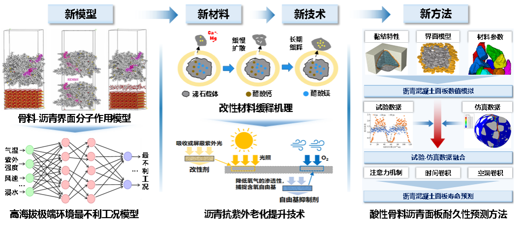 水利水电学院许增光教授主持的“高海拔极端环境下大坝酸性骨料沥青混凝土面板关键技术研究”联合基金重点支持项目,聚焦酸性骨料沥青混凝土在高海拔极端环境下难适用的问题,以“明机制,提性能、延寿命”为研究理念,依托雅砻江流域拟建的抽水蓄能电站,通过工程调研、室内试验、数值仿真、人工智能等研究方法,旨在阐明高海拔极端环境下酸性骨料沥青混凝土损伤劣化机制,研发抗冻抗裂低冰点改性水工沥青材料,开发全光谱紫外复杂环境下封闭层抗老化技术,实现酸性骨料沥青混凝土面板长期耐久性寿命预测。本研究拟构建“酸性骨料沥青黏附机制-抗冻抗老化提升技术-面板耐久性评价方法”理论技术体系,解决“冬冷-夏热-强紫外”极端环境下酸性骨料沥青混凝土面板应用难题,为雅砻江流域抽水蓄能电站建设提供理论与科技支撑,服务国家重大科技需求。