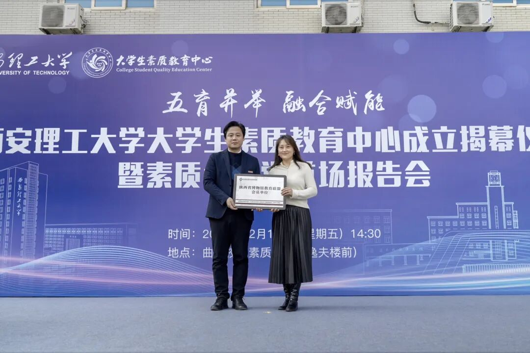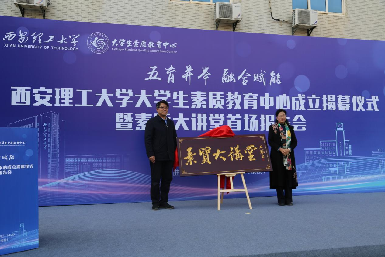 揭幕仪式环节,肖云儒、李颖科、吴振磊、刘云贺共同为大学生素质教育中心揭幕;石瑞芳、黑新宏共同为“素质大讲堂”揭牌;步雁向学校授予“博物馆教育联盟”牌匾,标志着西安理工大学大学生素质教育中心工作正式拉开帷幕。