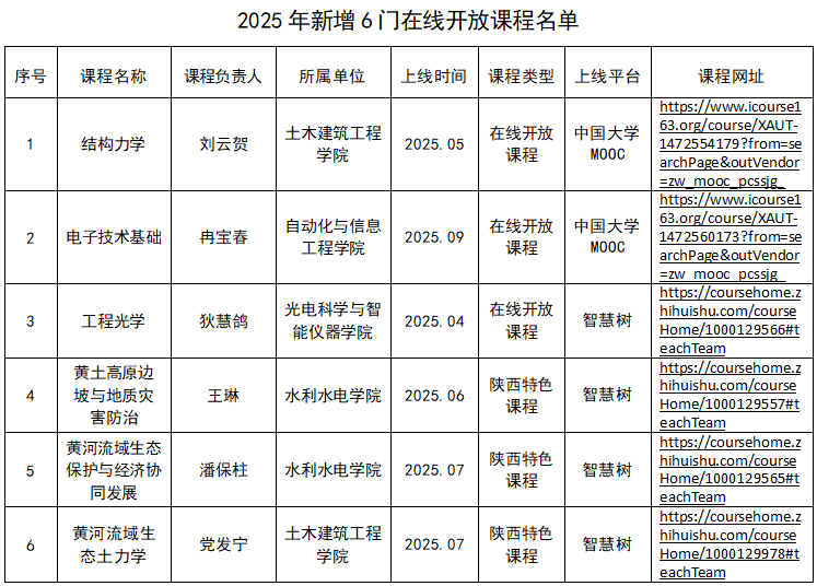近日,随着2025年秋季学期线上教学收尾与平台数据统计完成,我校自主建设的6门优质在线课程在经过一系列打磨优化后,正式通过中国大学MOOC、智慧树两大在线教育平台审核并全面开放,面向全国高校师生及社会公众提供免费学习服务,成为我校深化教育教学改革、推动优质资源共享的又一重要成果。