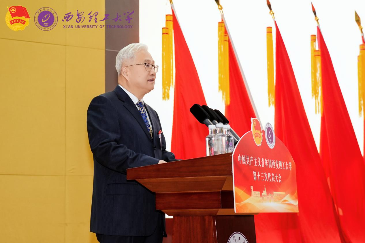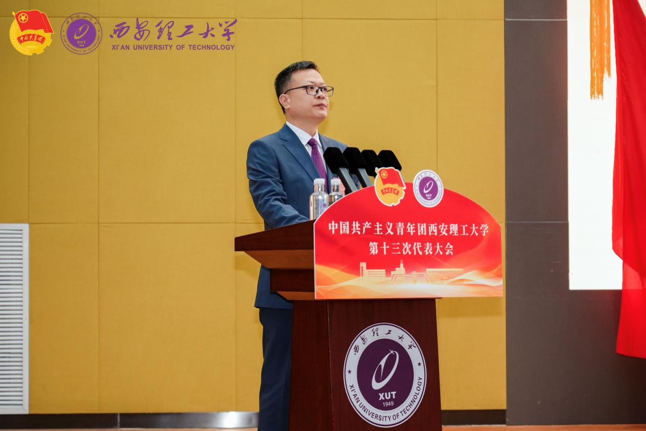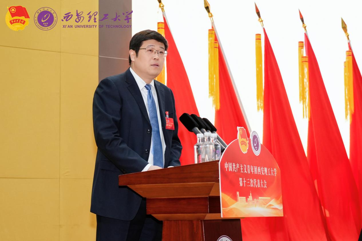李利波代表兄弟院校向大会的胜利召开致以热烈祝贺,向西安理工大学全体团干部和广大团员青年致以诚挚问候。李利波对我校厚重的历史积淀和丰硕的发展成果表示由衷敬意,认为其工作经验为省内兄弟高校共青团工作提供了重要启发和借鉴。他表示,西安交大与西理工渊源深厚、团学交流密切,两校结下了真挚情谊,西安交大愿与西理工及各兄弟院校共青团深化交流合作、携手共进,协同助力陕西高等教育高质量发展,为民族复兴贡献青春力量。同时,他坚信在新一届团委带领下,西理工共青团必将团结带领广大青年勇担使命、开拓创新,在服务学校发展和青年成长中展现更大作为。
