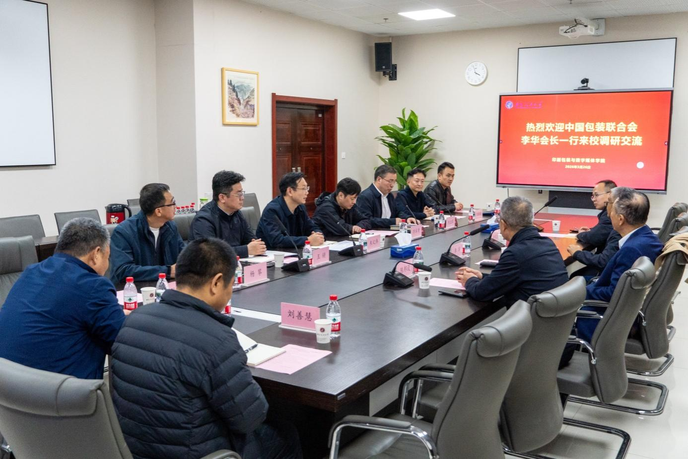 3月26日下午,中国包装联合会会长李华一行来我校调研交流。校党委书记李智军,省纪委监委驻校纪检监察组组长、校党委副书记、纪委书记李鹏在金花校区第一接待室会见来宾,副校长朱记伟参加座谈会并致辞。