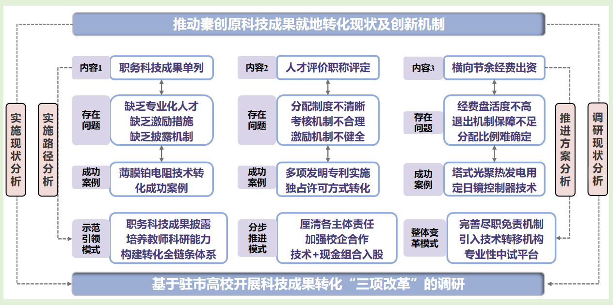 成果简介:本成果基于对西安市高校科技成果转化“三项改革”的实证调研,系统剖析了改革实施现状、瓶颈问题及政府、高校、企业等多方主体的互动机制与改革制约因素。研究从全过程视角出发,凝练出示范引领、分步推进、整体变革等改革实施的多元路径,这些路径兼具普适性与代表性,为西安市科技成果转化政策优化提供了创新思路与实践指南。研究成果已成功应用于多个企业、政府机构和高校,发挥了重要的指导作用,取得了良好的社会效益。