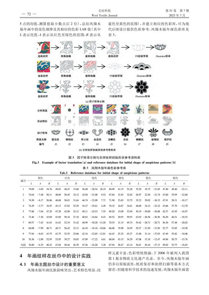 成果简介:陕西凤翔木版年画吉祥纹样其特定的构图、比例关系及组合逻辑是中华民族在农耕时期民众心理特征和精神追求的集中反映。本课题通过对陕西凤翔木版年画图式纹样独特的民间语汇体系梳理及分析,结合形状文法生成规则与衍生规则的推演与再设计,将代表性吉祥纹样通过纹样、色彩及情感进行因子提取与转译,生成“图必有意,意必吉祥”的具有凤翔木版年画文化基因的现代丝巾图式语言,探究了年画在新时代场域下的可塑性、延展性与创新性。
