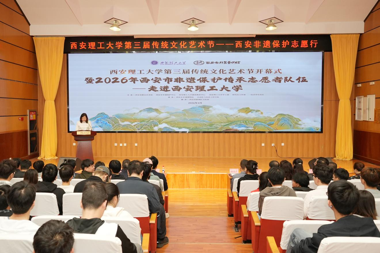 为深入贯彻新时代高校“五育并举”教育方针,全面推进素质教育,弘扬中华优秀传统文化,4月16日上午,我校第三届传统文化艺术节开幕式暨2026年西安市非遗保护传承志愿者队伍走进西安理工大学活动在金花校区图书馆报告厅及明德广场举行。