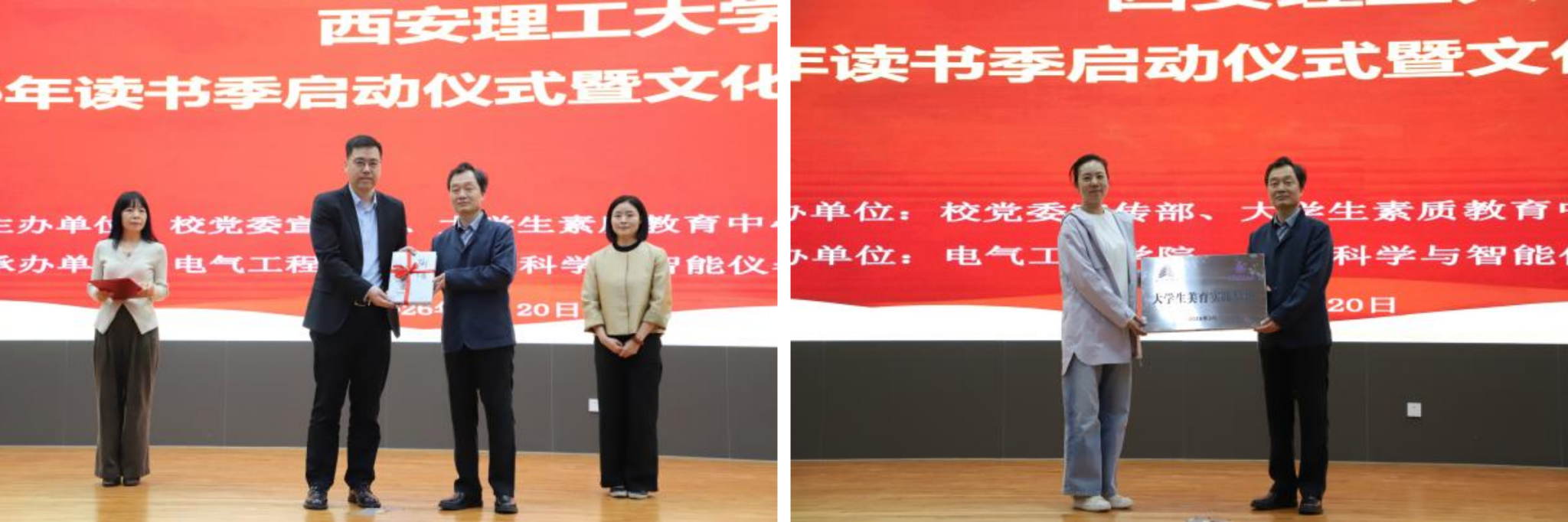 活动上还举行了图书捐赠与基地授牌仪式。王自力向图书馆捐赠了《西安文物精华——陶俑》等文献5种7册,图书馆为其颁发了收藏证书。校团委副书记宋元元向西安博物院授予“大学生美育实践基地”牌匾。