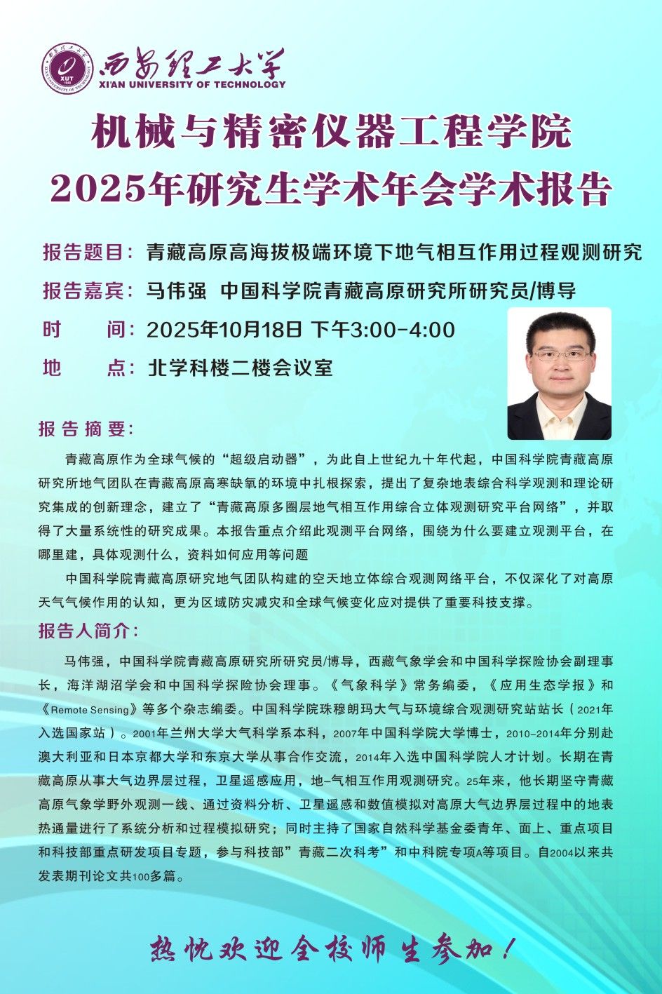 创新论坛第225讲:【机仪发布】研究生学术年会——中国科学院青藏高原研究所马伟强研究员学术报告
