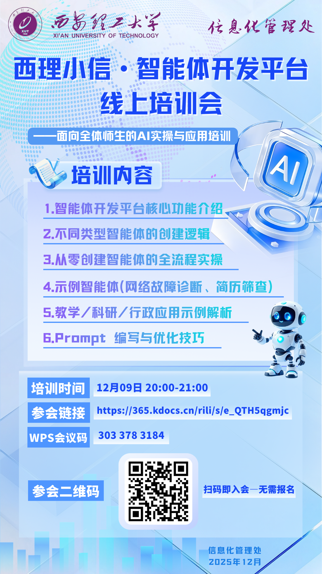 【数智赋能】西理小信.智能体开发平台线上培训会