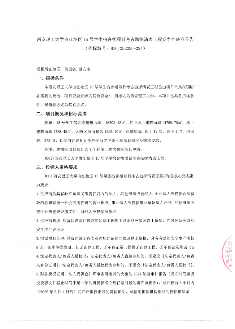 【清表工程】西安理工大学曲江校区15号学生宿舍楼项目考古勘探清表工程竞争性磋商公告
