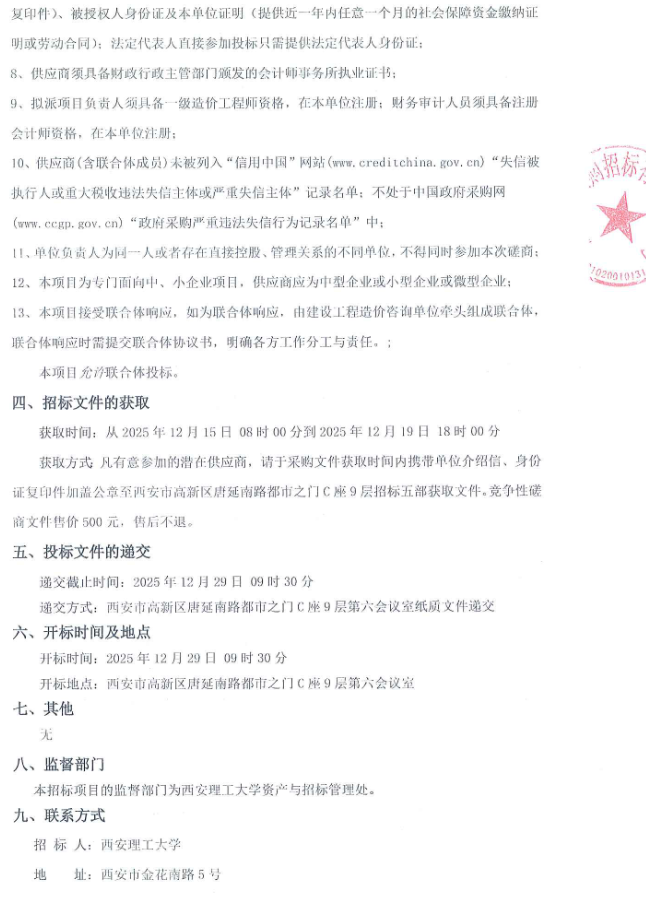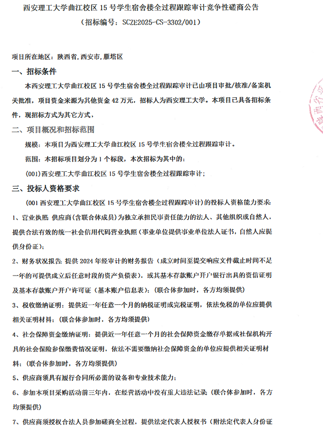 【全过程审计】西安理工大学曲江校区15号学生宿舍楼全过程跟踪审计竞争性磋商公告