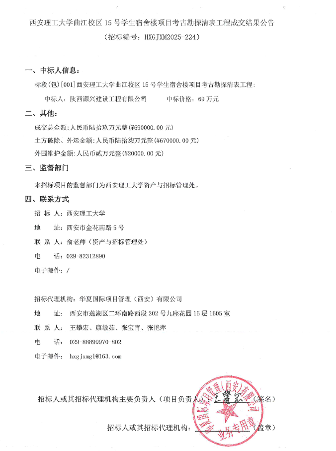 【清表工程】西安理工大学曲江校区15号学生宿舍楼项目考古勘探清表工程成交结果公告