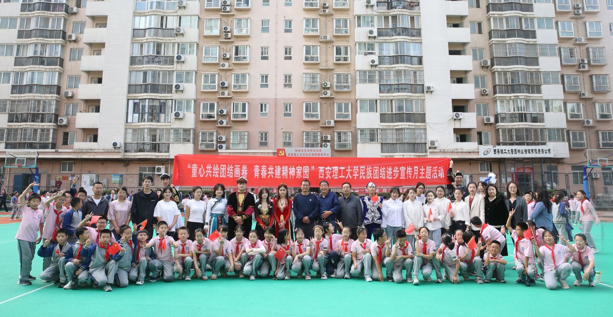 9月29日上午,西安理工大学以“童心共绘团结画卷,青春共建精神家园”为主题,在附属小学和社区同步开展民族团结进步宣传月主题活动。通过共升国旗、文化展演、社区共学等多元形式,凝聚民族团结力量,传承优秀民族文化,铸牢中华民族共同体意识。校党委统战部、人文与外国语学院、子弟学校、社区等有关单位负责人和各族师生代表参加。