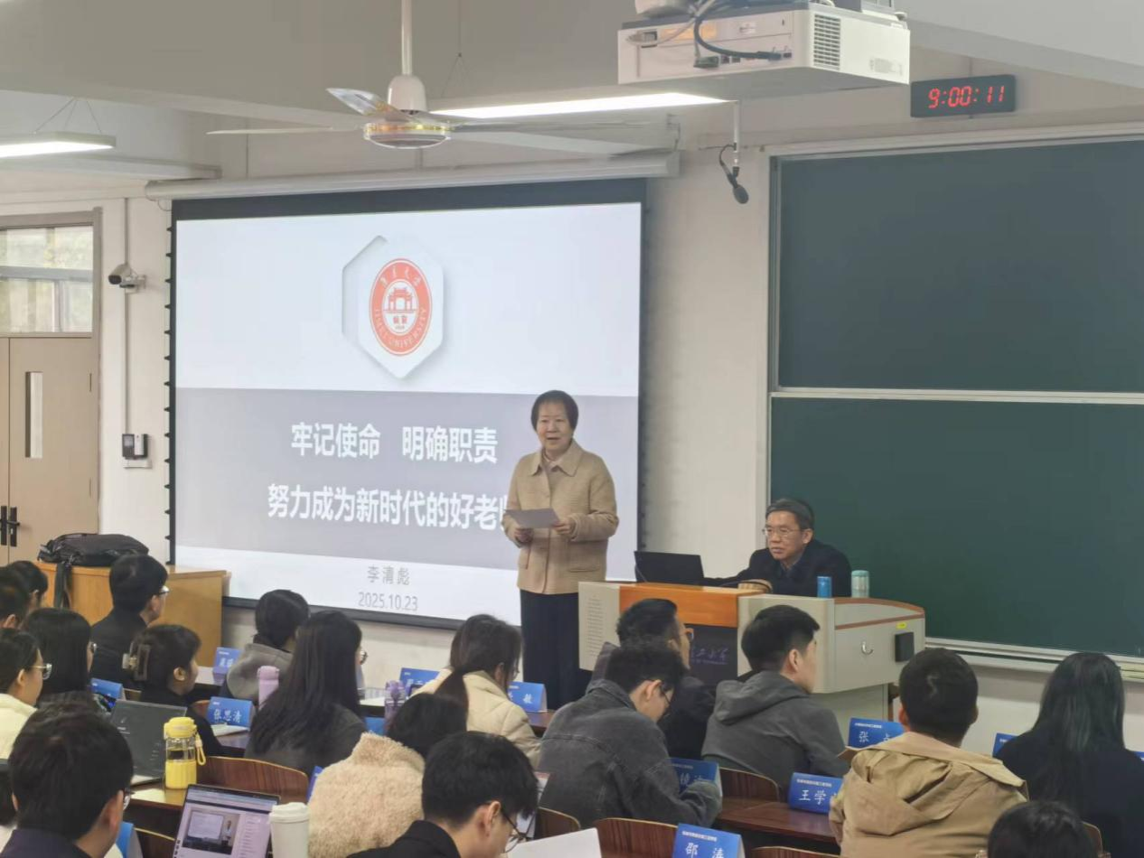 凭借多年高校行政工作经验,李清彪教授还分享了个人行政工作体会,强调行政工作对教学科研的支撑保障作用和团队协作的重要性,并寄语我校全体新入职教师“一声西理工,一生西理工”。