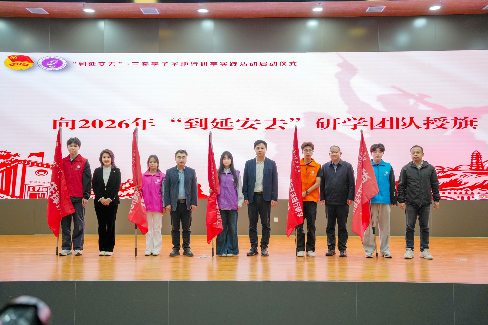 仪式上,张存库为担任研学导师的思政课教师颁发聘书;组织部、宣传部、学工部、校团委、马克思主义学院五部门负责人为2026年首批研学团队郑重授旗;2025年“延安行”优秀学员代表分享研学收获与成长感悟;全体研学学员现场发出倡议,承诺严守纪律、认真研学、文明出行,以良好风貌展现西理工人的时代担当。