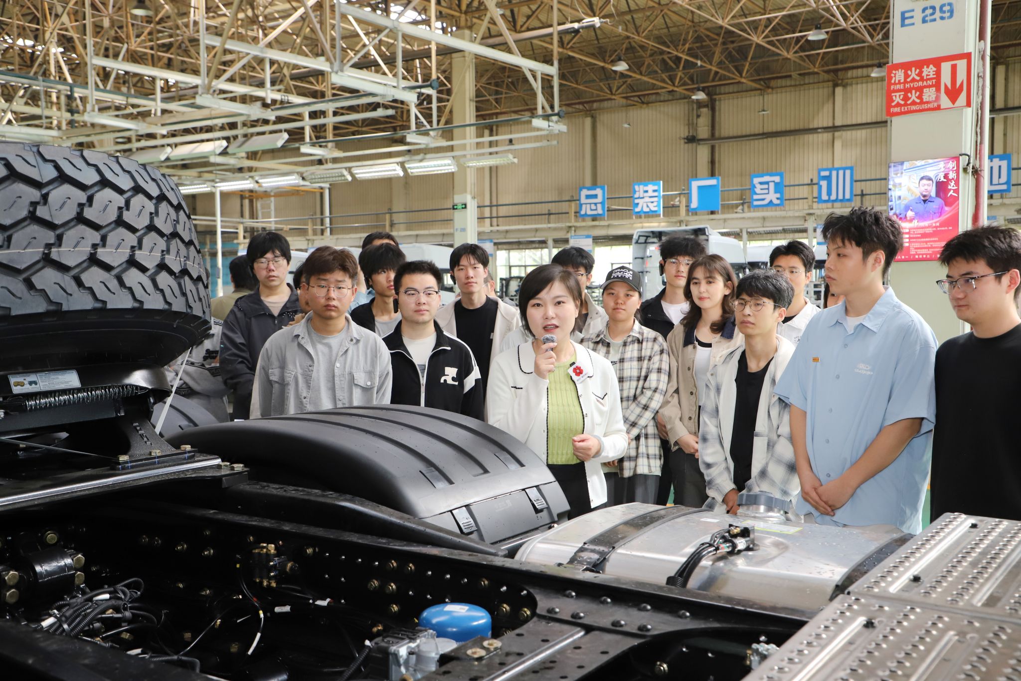 活动中,师生依次参观陕汽企业文化展厅、天行健车联网展厅及汽车总装生产线,沉浸式感受智能制造、车联网技术等行业前沿成果,全面了解企业发展历程、产业布局与整车装配工艺流程。在总装车间现场,马克思主义学院思政课教师马树锦以生产一线为课堂,围绕制造强国战略、工匠精神与青年使命担当开展现场教学,推动思政理论与产业实践、专业学习深度融合,打破传统课堂边界,实现思政小课堂与社会大课堂同频共振。