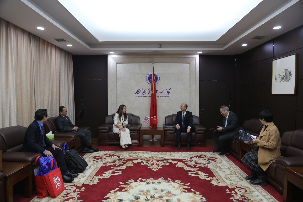 3月31日,马来西亚双威大学副校长蔡岦臻教授一行来访我校。副校长董小兵在第一接待室会见代表团一行,双方围绕校际合作展开交流。